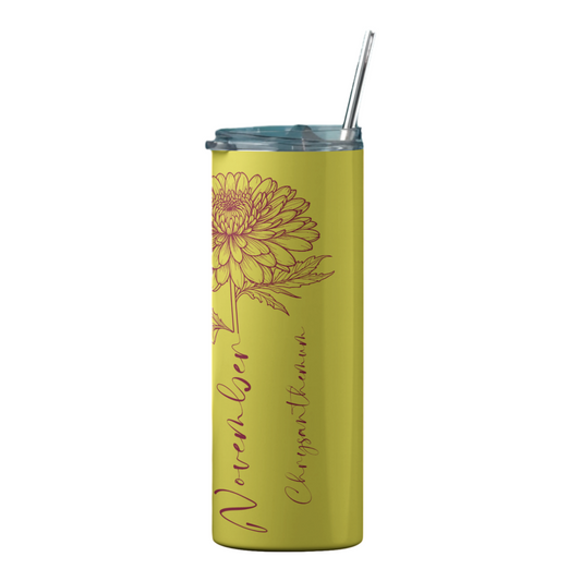 November Birth Flower Skinny Tumbler – Chrysanthemum Design